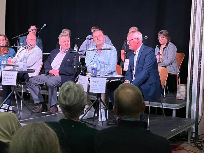 Jesper Hammer er på podiet til debat i Gl. Bio i Fredensborg. Debatten går lystigt om kulturen og livet i Fredensborg